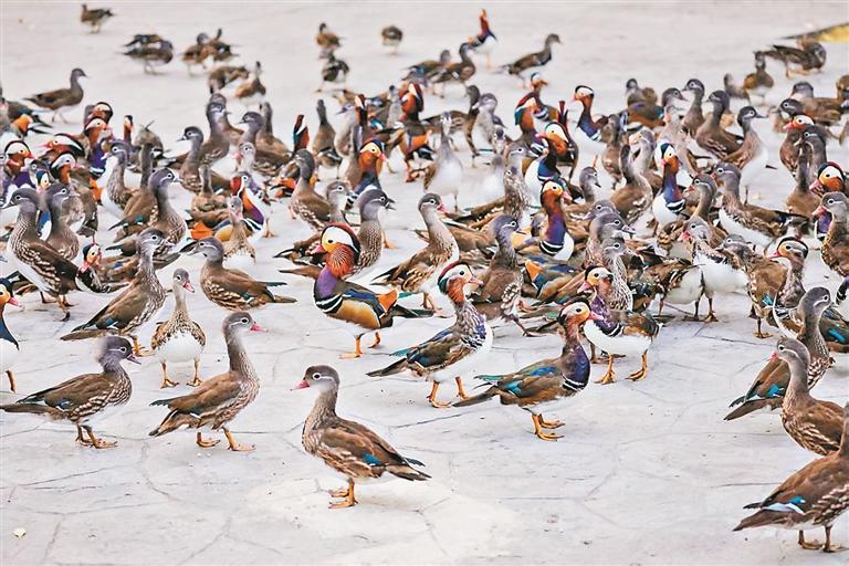 如今,兆麟公园内的鸳鸯仍在享受着南迁前的时光,每天早上和傍晚,它们会聚集到岸边觅食,水面上的身影灵动又自在。“希望它们能顺利飞到南方,明年春天,我们再在这里等它们回来。”车春虎望着湖面,眼中满是期待。